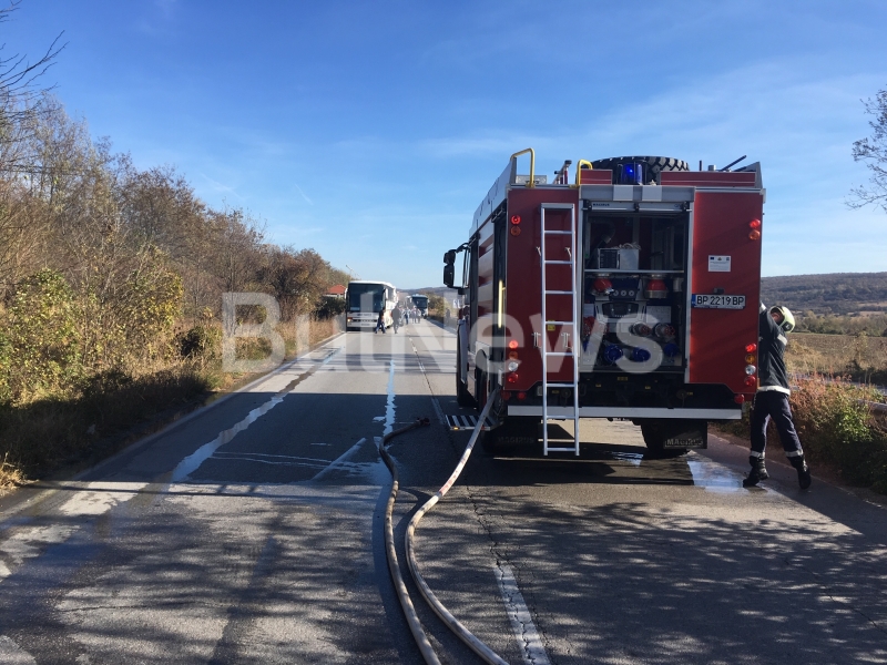 От последните минути! Бургаски автобус с работници гори на Е-79 между Мездра и Враца /снимки/