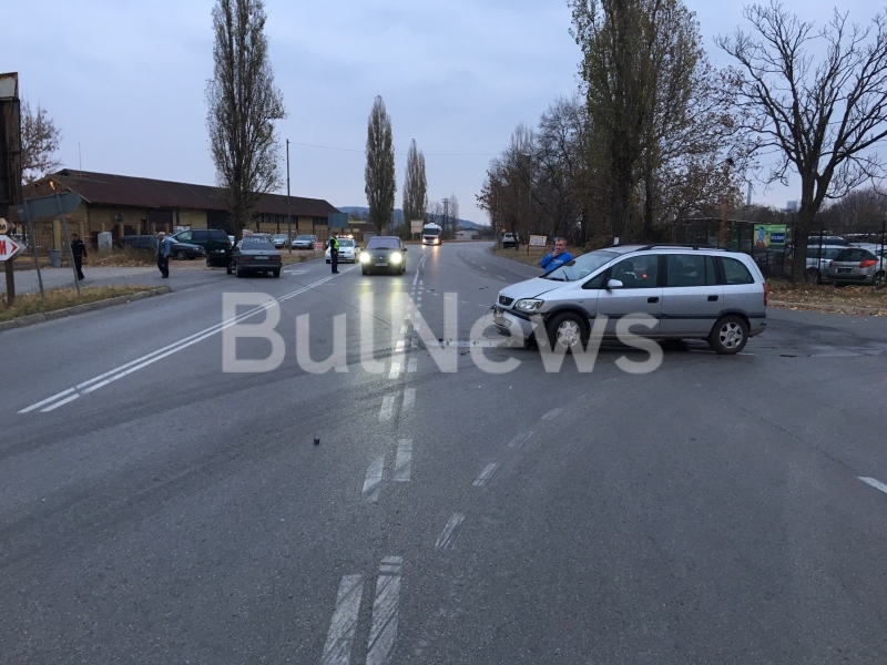 Възрастен шофьор е излязъл направо на булевард „Васил Кънчов“, където помел пътуващ към изхода на града „Фолксваген Пасат“. От удара и двата автомобила с врачанска регистрация са с огънати ламарини, като по целия път има разпилени части от тях.