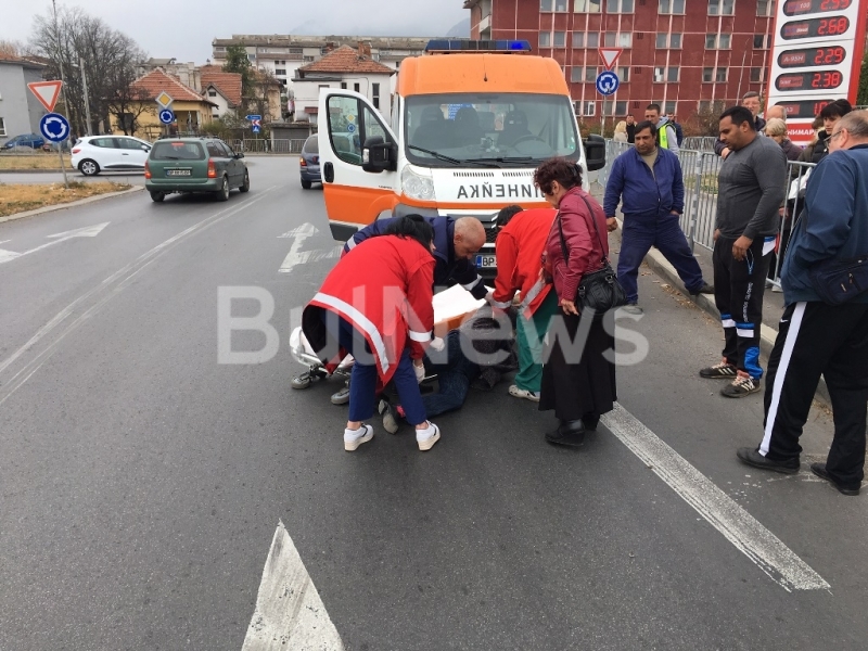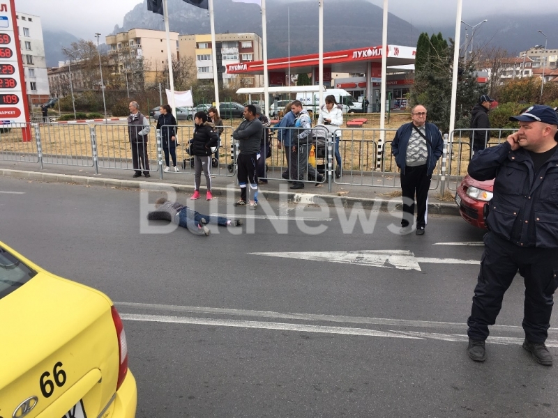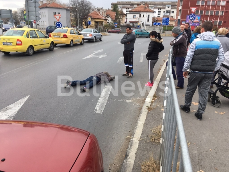 Жената лежеше на асфалта, като състоянието й видимо е тежко. След минути на местопроизшествието пристигна екип на Спешния център, като медиците натовариха жената в линейка и я откараха в болница.