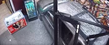 Камера за видеонаблюдение е запечатала как жена влезе с кросоувъра си в магазин за алкохол в Мускиджън Хейтс, Мичиган.
