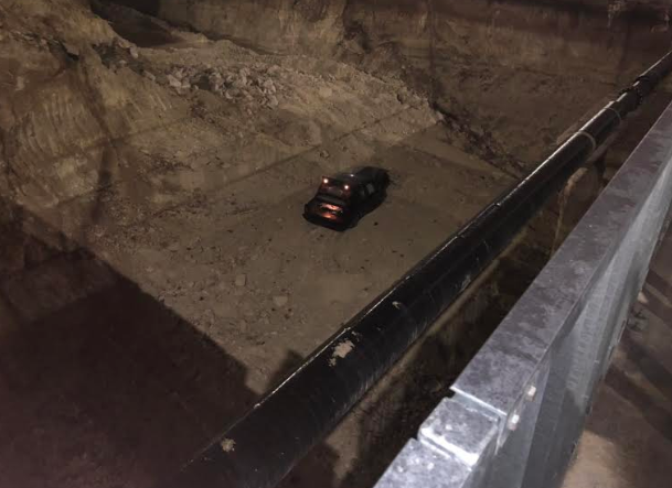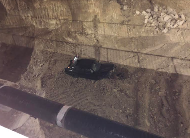 Кола е излетяла и паднала в дупката на новоизграждащия се булевард "Левски" във Варна. Както се вижда автомобилът е с пострадала предница и задница. Не е ясно как точно се е стигнало до инцидента.