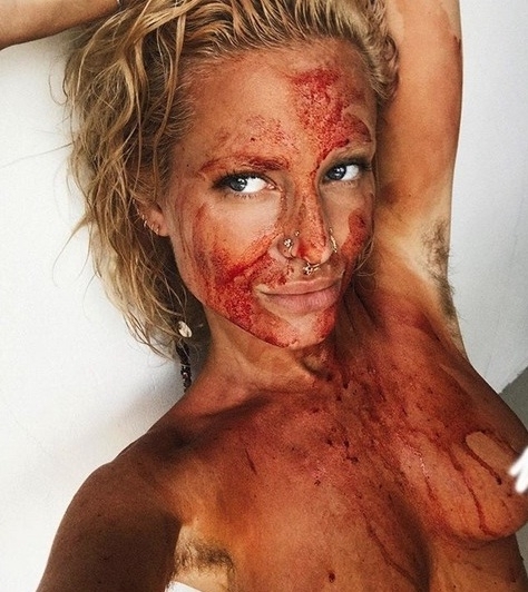 "Днес след много продуктивен и забавен ден се прибрах вкъщи с глава, пълна с мисли, които трябваше да подтисна, защото не можех в този момент да постигна покой. Седнах, дишайки дълбоко и изведнъж усетих силен порив да се покрия с "женската си кръв". Така че, без да се питам как или защо, просто го направих. Разтрих кръвта по цялото си тяло, а след това се търкалях гола на тревата пред дома си", описва странните си преживявания в инстаграм Максин. Над 5 хиляди души реагират на странната публикация.