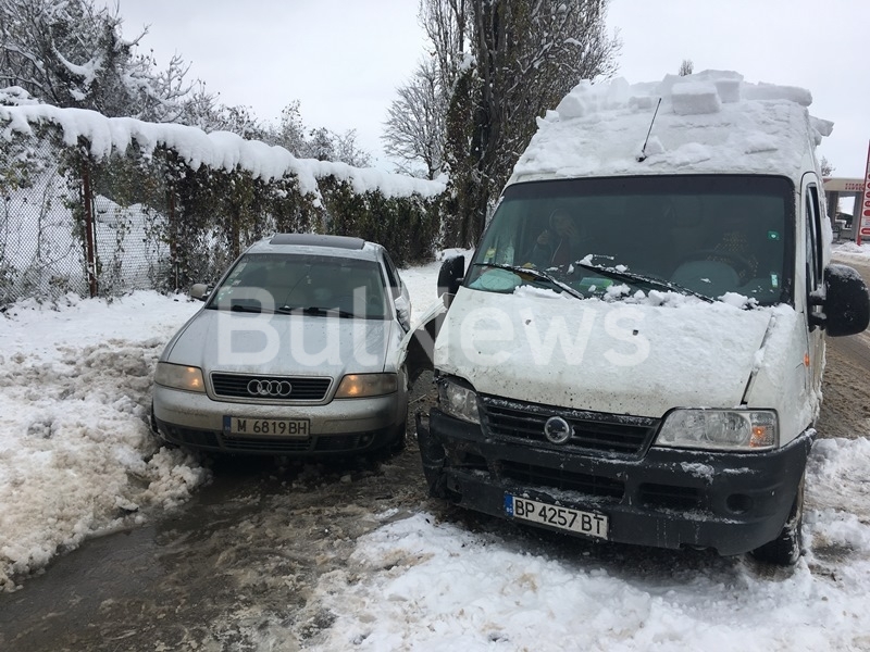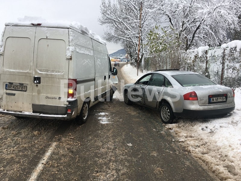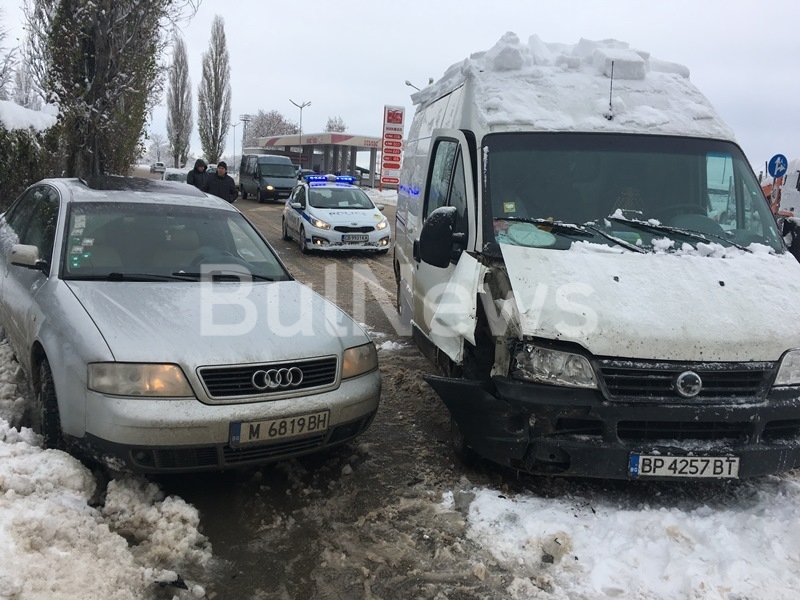 Инцидентът е станал преди минути в района на картинг пистата. Лек автомобил „Ауди“ се движел по бул. „Васил Кънчов“ в посока Монтана. Водачът обаче загубил контрол над управлението и се завъртял на шосето. За беда в този момент насреща му идвал товарен микробус „Фиат Дукато“. Шофьорът не успял да избегне удара и двата автомобила се сблъскали.