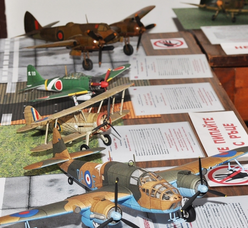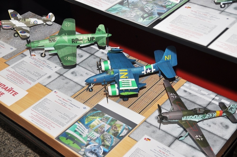 Eкспозицията представи модели над 70 самолета, изработени от хартия. Автор на уникалните модели е украинският художник Игор Шатохин. „Аз не правя модели на граждански или спортни самолети, а само на военни – съветски, германски, американски, британски, френски, итиалиански, японски, които са оставили следа в историята. Имам модели от Първата световна война като „Иля Муромец” и „Фокер”, както и на всички държави, които са строили бойни самолети по време на двете световни войни. Направих изтребителя на Димитър Списаревски – „Месершмит G-2”, на който той е летял. У нас в Украйна, както и по света, знаят за българския въздушен ас, а в Япония камикадзета са изучавали неговия подвиг.", каза Игор Шатохин.