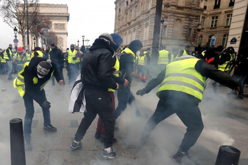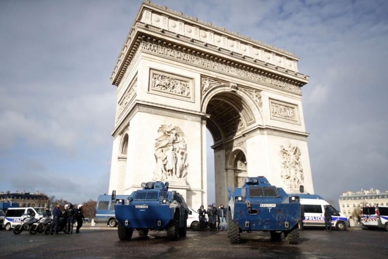 "Нулева толерантност" обяви към потенциалните вандали вътрешният министър седмица след като бяха разграбени магазини на "Шанз Елизе" и бе поругана Триумфалната арка, върху която се изкачиха някои от протестиращите, преди полицията да овладее отново прочутия паметник.