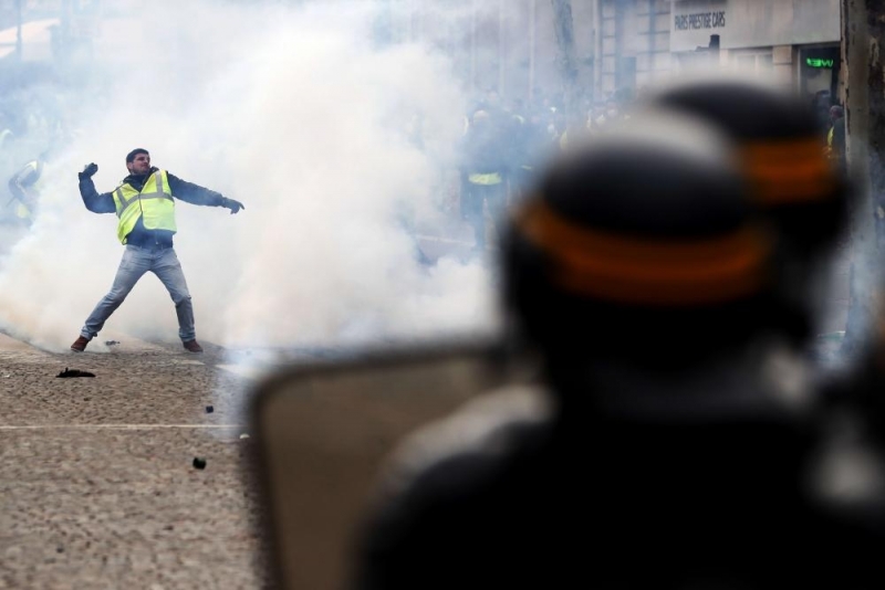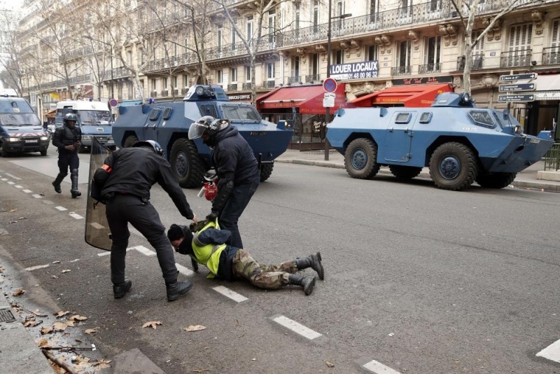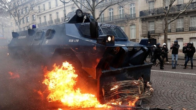 За пръв път от 13 г. по улиците на френската столица се появиха и бронирани машини, а водните оръдия вече бяха задействани срещу агресивни "жълти жилетки". Инцидентът е станал на булевард Марсо, в непосредствена близост до Шанз-Елизе. Полицията прибягна до водни оръдия, след като протестиращите са започнали да хвърлят камъни и бутилки по органите на реда.