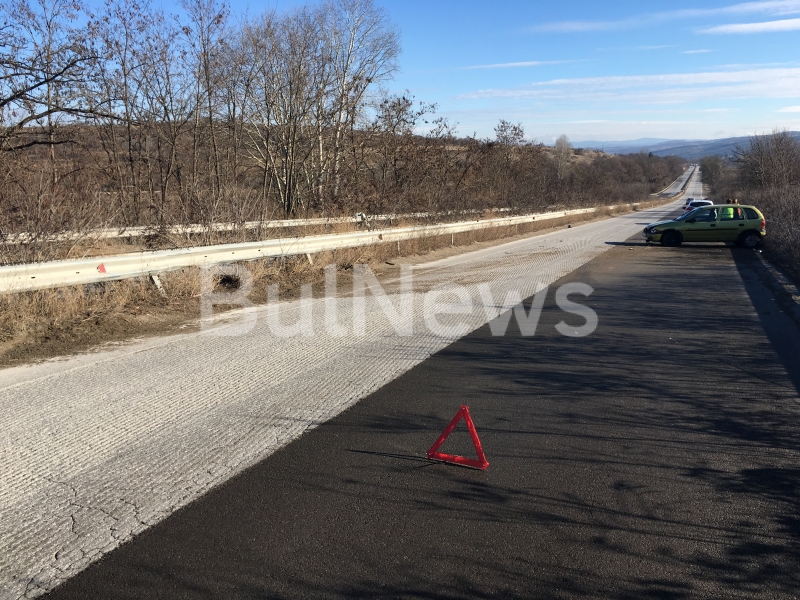 Колата е поднесла в дясната лента върху ремонтиран участък, на който асфалтът все още не е ферзован. В момента трафикът по пътя към София е силно натоварен и ще е истинско чудо, ако не стане нова катастрофа.