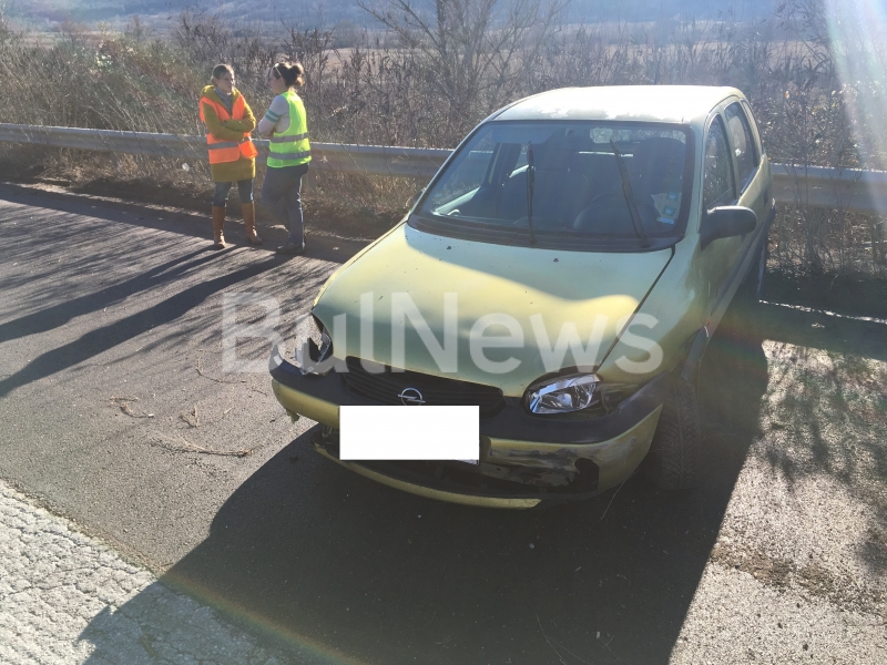 Колата е била шофирана от жена, която пътувала със своя приятелка към столицата. За щастие двете жени не са пострадали от силния сблъсък, но „Опел“-ът е със смазана предница и ще е нужна пътна помощ, за да бъде изтеглен от пътя.