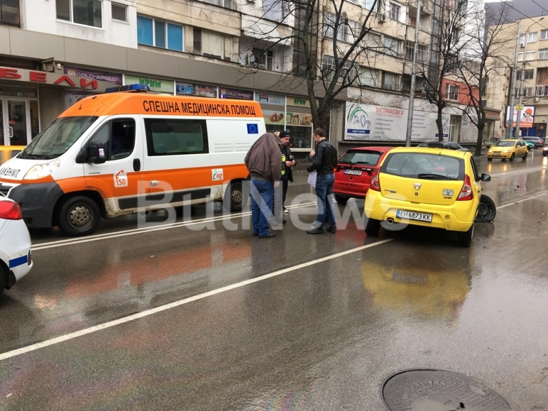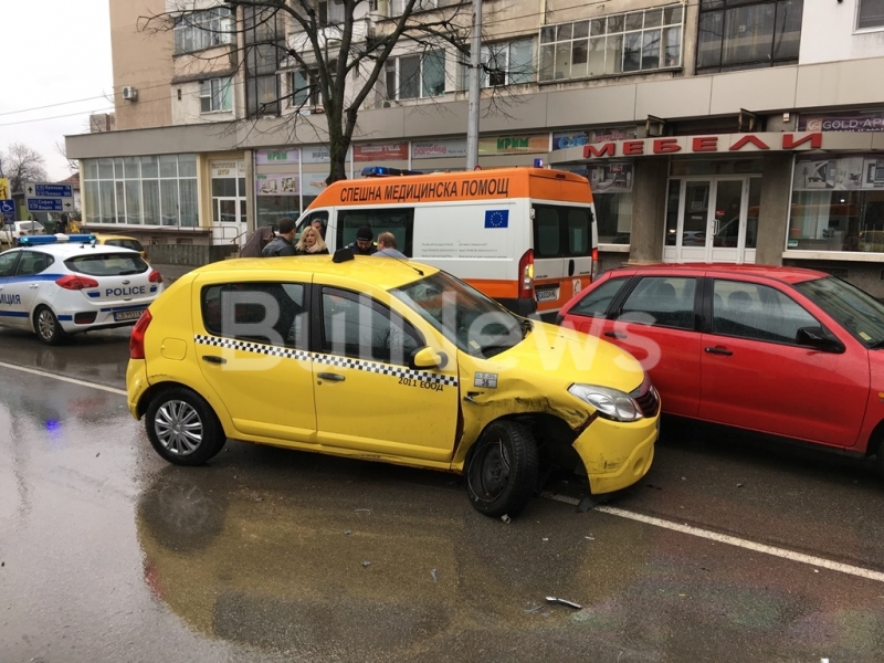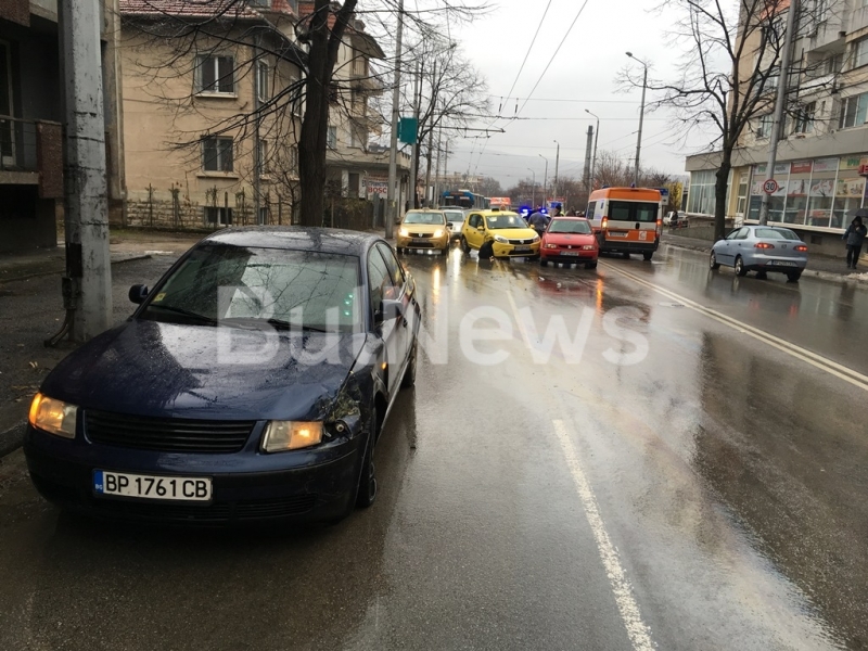 Инцидентът е станал преди минути точно преди светофарите на булевард „Мито Орозов“. По думите на очевидци произшествието е предизвикано от такси с плевенска регистрация. Шофьорът тръгнал да се престроява от лявата в дясната лента, като не пропуснал движещата се там кола „Фолксваген Пасат“ и го ударил странично. След това таксито се завъртяло и натресло и друг автомобил „Сеат Ибиза“.