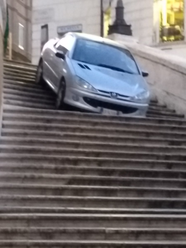 Пиян шофьор слезе по Испанските стълби в Рим с колата си