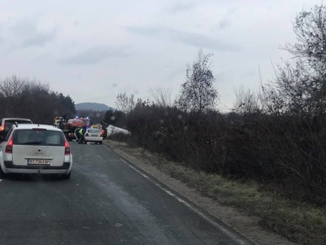 По първоначална информация при удара между ТИР и товарен бус са пострадали двама и е загинал пътник от буса. На място са изпратени екипи на полиция, пожарна и спешна помощ. Движението в района се регулира от пътни полицаи.