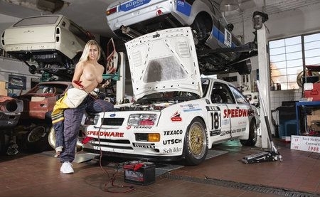 Какви ли не автомобили попадат в автосервизите! Но в дадения случай те служат само като фон, основният акцент е върху сексапилните красавици, приковаващи погледа.