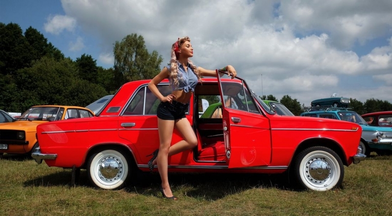 Мис SunDay позира в Audi Quattro. Рали купето от 1984 г. е възстановено в Рига, неговата мощност е около 500 к.с. Красавицата, класирала се на второ място, позира на фона на VW Beetle от 1965 година.