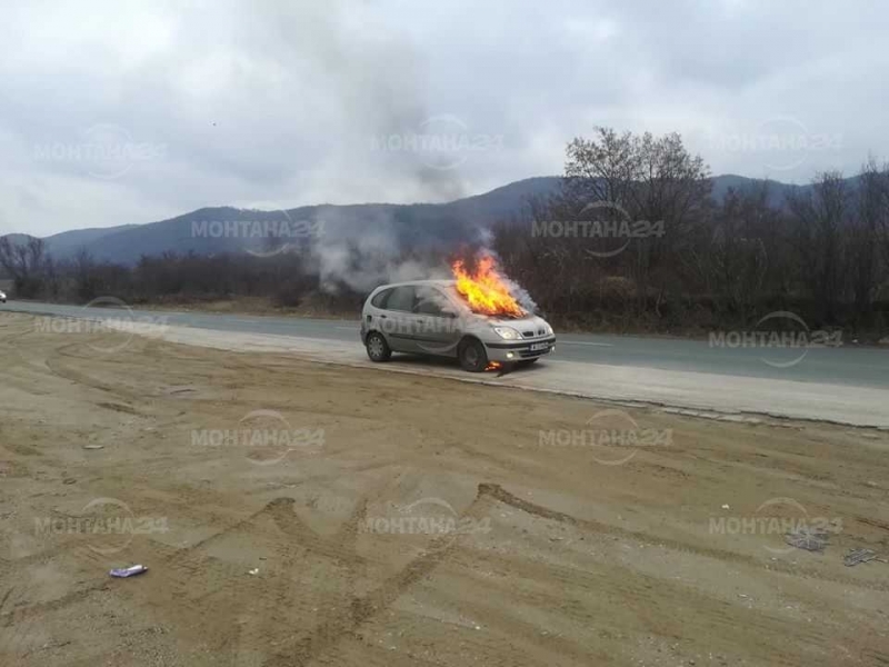 Лек автомобил „Рено“ с монтанска регистрация е горял на главен път Е-79 между Мездра и Ботевград, научи BulNews.bg.