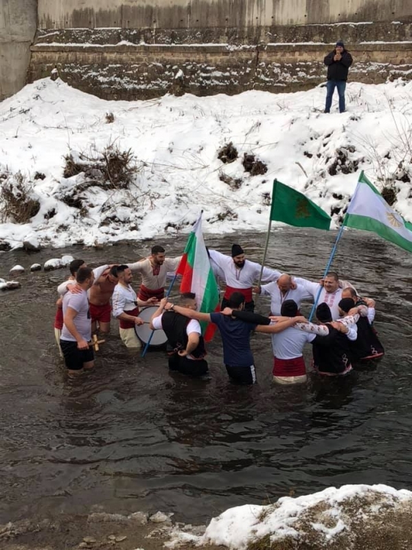 8 мъже на различни възрасти скочиха в ледените води на река Ботуня. Всички те изиграха мъжко хоро, водено със знамето на България. Голяма част от мъжете бяха облечени в традиционните народни носи. Ритъмът отмерваше тъпан, който допълваше мелодията на духов оркестър „Дефилир“ при СУ „Иван Вазов“.