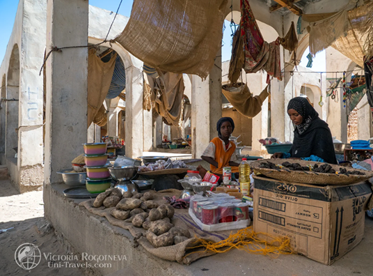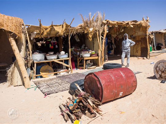 Тук отново купихме вода. Отидохме в магазина, посочихме с пръсти, на кого и колко бутилки вода трябват на ден - 9 кутии по 2 литра всяка в контейнер. Общо 162 литра. Видяхме в очите на продавача първо изненада, после удивление, а след това копнеж - толкова много вода за пиене в този град няма и никога не е имало. Всички местни хора пият вода от кладенци и вади, отдавна привикнали към всички амеби и бактерии и водят напълно спокойна симбиоза с тях. Малките запаси от минерални води се съхраняват изключително заради 10-15 случайно отклонили се туристи. И те продават по три начина. Толкова скъпо, както тук, в центъра на Сахара, никога не съм купувала вода - 6 долара за половин литър."