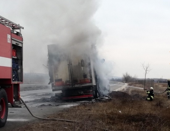 Камион гори на АМ "Марица" между Харманли и Любимец. Инцидентът е станал на 74-и км, а превозното средство, натоварено с тор, е пътувало от Турция за Беларус.