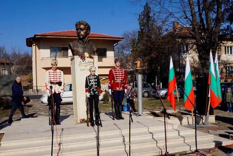 С падане на колене и минута мълчание присъстващите преклониха глави пред подвига на героя, отдавайки почит на достойния син на България Васил Левски.