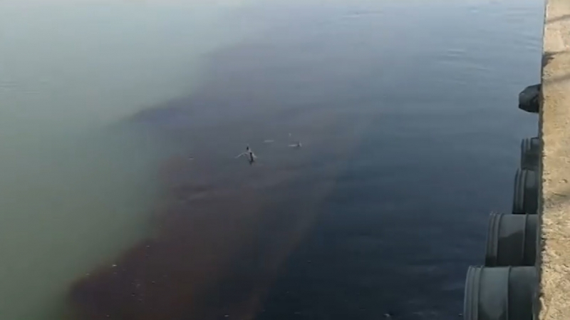 Местен жител разказва, че е забелязал петното, което се е разнасяло във водата.