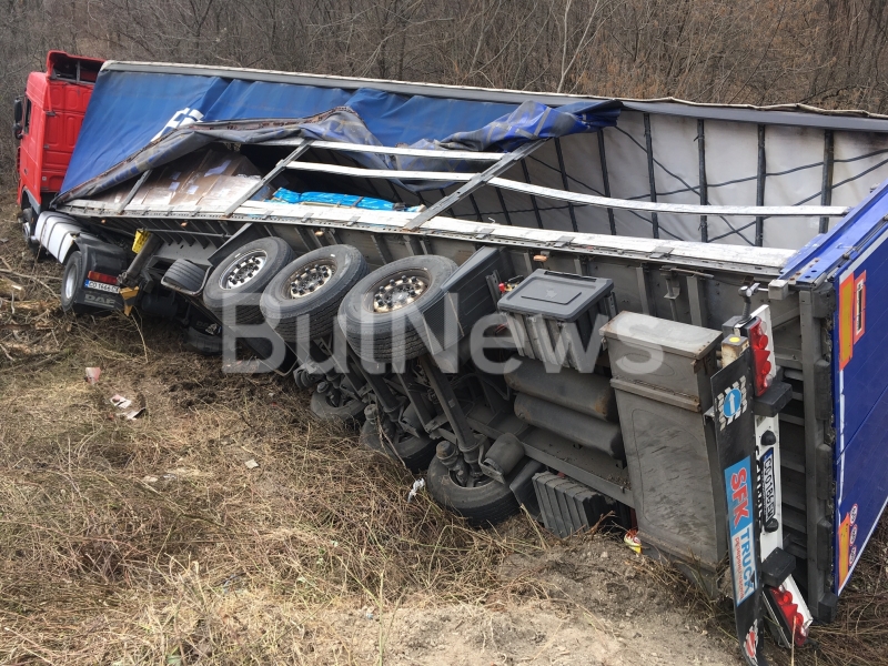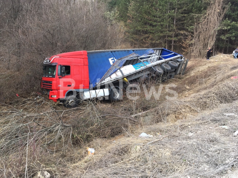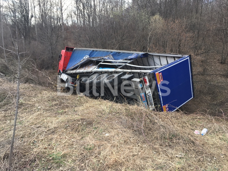 Извънредно! ТИР се обърна на остър завой на Е-79 край Враца, карат шофьора в болницата /снимки/