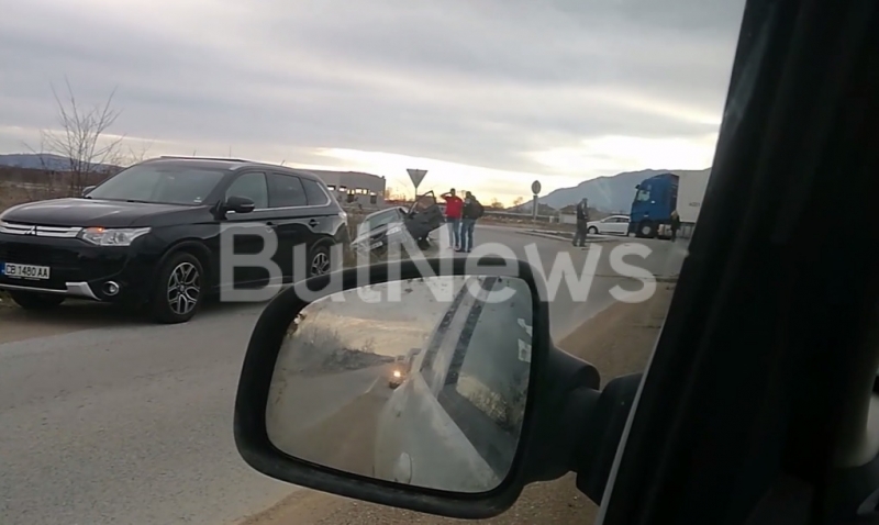 Трафикът в района се осъществява нормално, но по асфалта има множество разпилени части от двете коли. Съветваме водачите да преминават с повишено внимание.