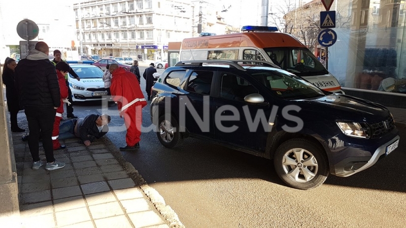 Инцидентът е станал преди броени минути. Млада жена шофирала лек автомобил „Дачия“. Тя излязла от кръговото кръстовище и тръгнала по улица „Кръстьо Българията“. Точно под безистена обаче, шофьорката не видяла пресичащия на пешеходната пътека възрастен мъж и го блъснала.