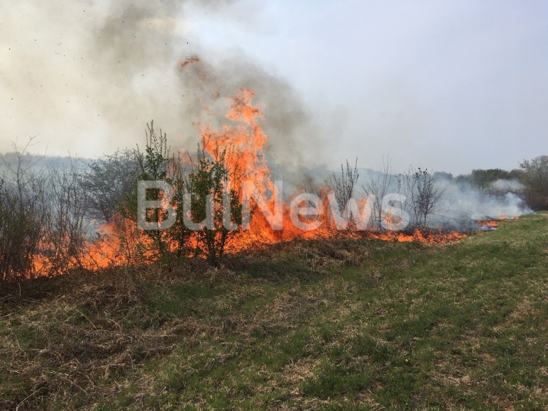 Горят сухи треви по цялото поле. Пламъците се разпростират на огромна площ и продължават да се разрастват. Очаква се всеки момент стихията да захапе и сградите на бившето селскостопанско летище. Имотът е заобиколен отвсякъде от пламъци. Обектът е заключен и няма охрана, освен зли кучета.