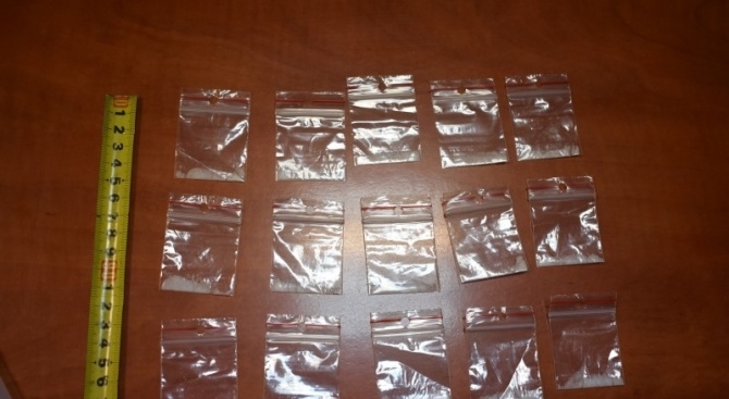 В нея са намерени и иззети 15 пакетчета, съдържащи бяло кристалообразно вещества, което при полевия тест е реагирало на метамфетамин - „пико“.