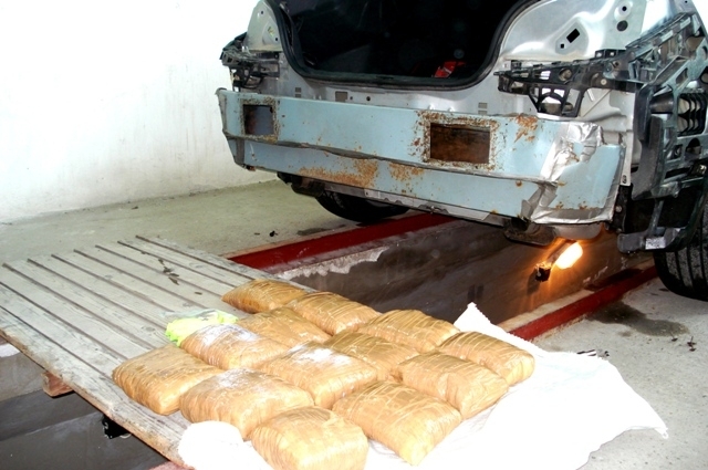 13,665 кг. метаамфетамин задържаха митически и гранични служители в района на Дунав мост 2 „Видин - Калафат“ на 12.04.2019 г. Наркотичното вещество е открито след сканиране с рентген в специално изграден тайник, разположен зад задната броня на лек автомобил „Пежо“ с българска регистрация, напускащ България. След демонтаж на бронята митническите служители извадили от тайника 14 пакета, обвити в бежово тиксо и съдържащи 13,665 кг. бяло прахообразно вещество, което при полеви наркотест е реагирало на метаамфетамин. Водачът на автомобила – П.М., признал, че сам изградил тайника и сложил в него наркотика. Образувано е досъдебно производство по описа на ГПУ Видин.