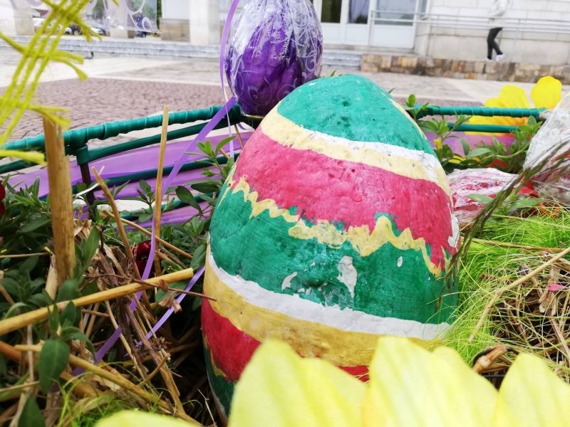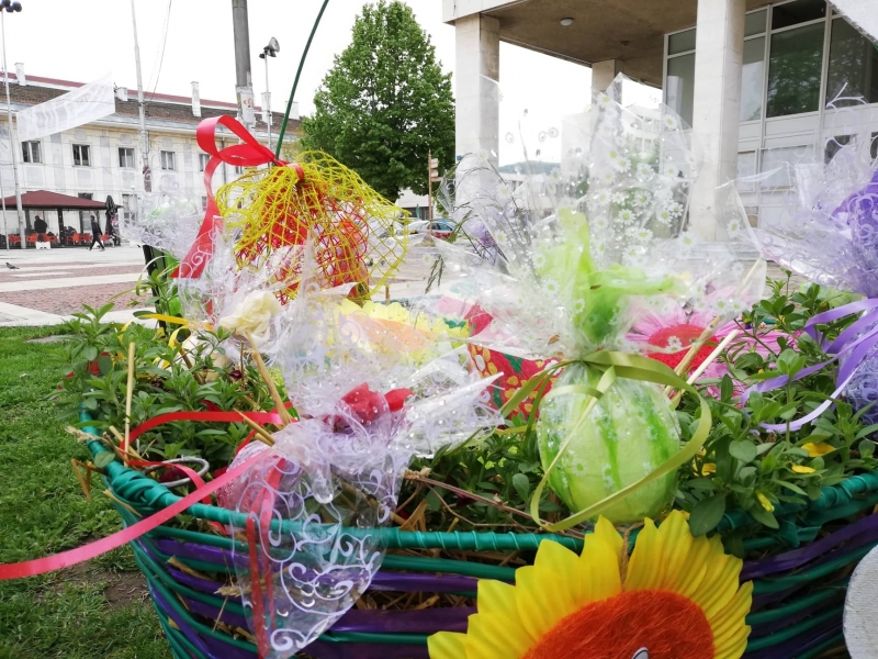 Предвеликденско разкрасяване на града радва жителите на Мездра. Огромна кошница с великденски подаръци и писани яйца привлича детското любопитство и погледите на минаващите пред сградата на общината.