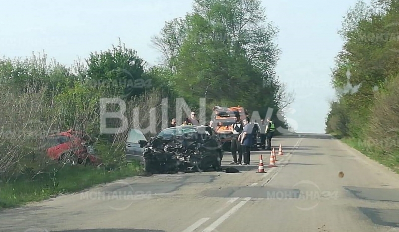 На мястото на катастрофата има екипи на пожарната и Гражданската защита. Линейки също са отишли към мястото на инцидента. Четирима души са пострадали при катастрофата, станала около 16 часа. Ранени са шофьорите и по един пътник от двата автомобила, които са се ударили челно, казаха от полицията. Пострадалите са настанени в болницата в Монтана, но няма опасност за живота им.