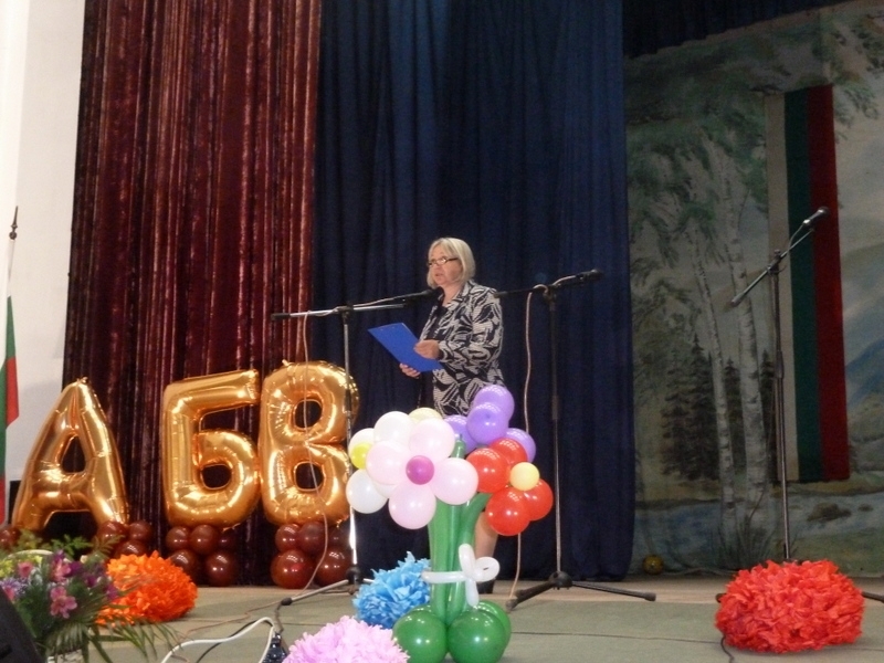 Инж. Тодорова поднесе поздравителен адрес, букет и специален подарък за училището. С много вълнение тя поздрави учители, ученици, родители и персонала на училището.