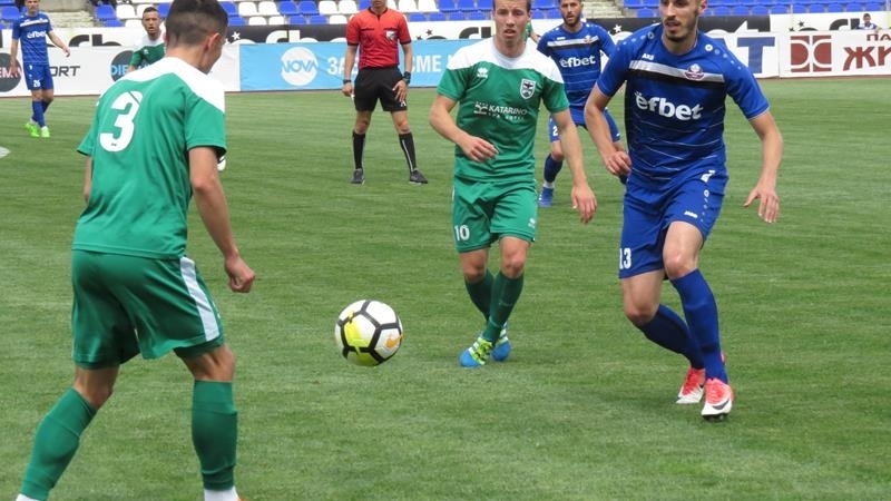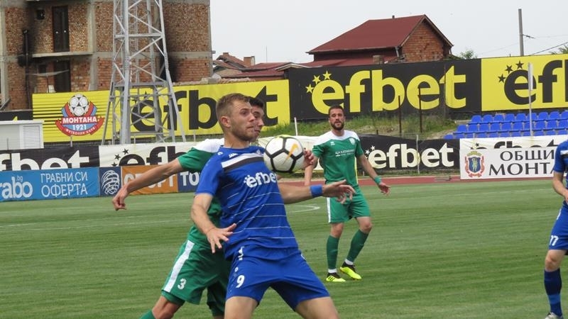 "Монтана" победи с 2:0 "Пирин" (Благоевград), запази второто си място във временното класиране и си осигури участие на бараж. Треньорът на "Витоша", който е един от потенциалните съперници на мотнанци за влизане в елита, Росен Кирилов изгледа мача от официалната трибуна.