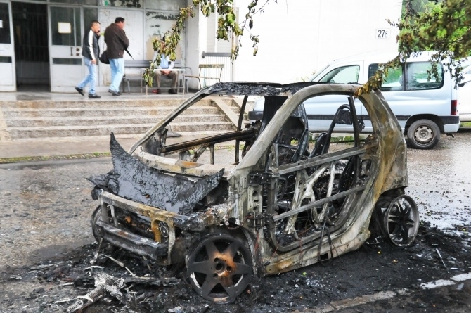 Умишлен палеж предизвикан от коктейл Молотов унищожи напълно автомобил “Смарт” паркиран пред блок в комплекс “Изгрев” в Бургас.