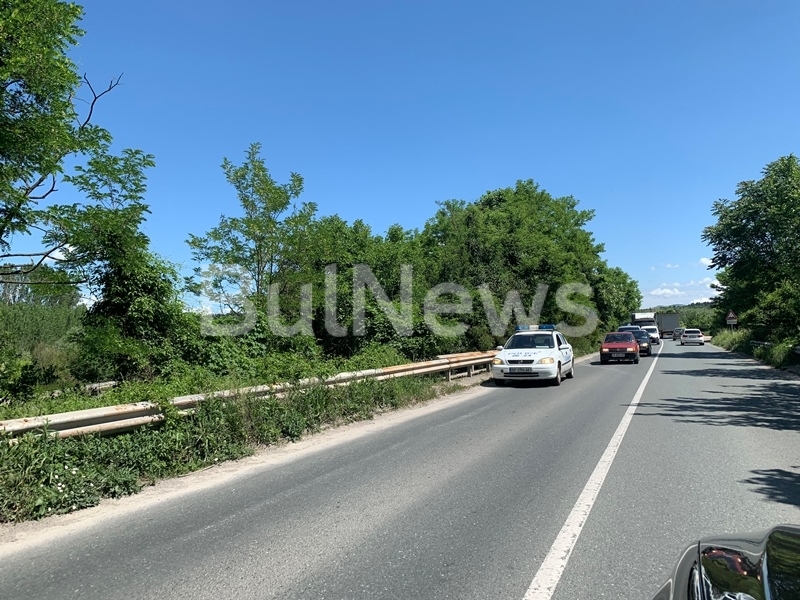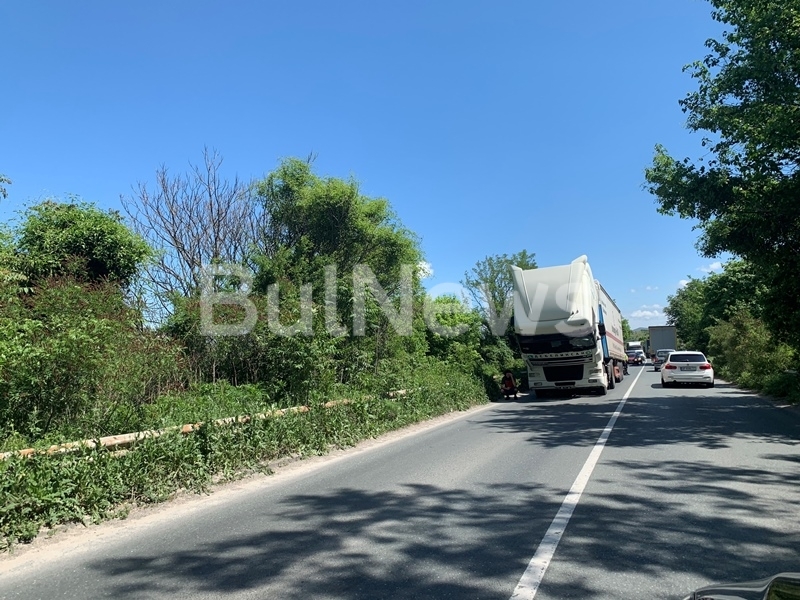 В момента камионът заема цялата лента за движение и пречи на останалите участници в движението. На мястото има екип на полицията, който регулира трафика. Колите се пропускат поетапно в двете посоки и вече има образувано задръстване.