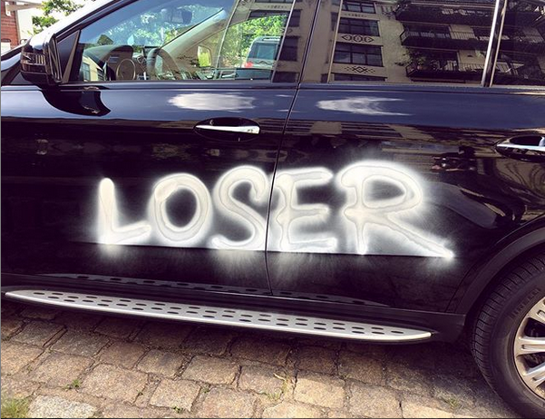 Германската хубавица София Томала стана жертва на хулиганска атака от феновете на "Бешикташ". Актрисата и модел е гадже на вратаря на турския гранд Лорис Кариус, но колебливите му изяви в рамката явно са ги ядосали. Местните изписаха думата "неудачник" с бяла боя върху черната ѝ кола. Блондинката пусна снимка на щетата с коментар "Направо страхотно".