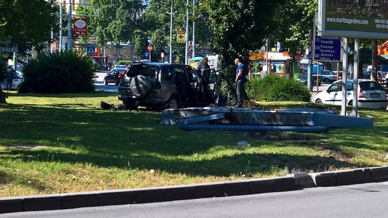 Пиян полицай събори с автомобила си билборд до Централна гара в Пловдив.