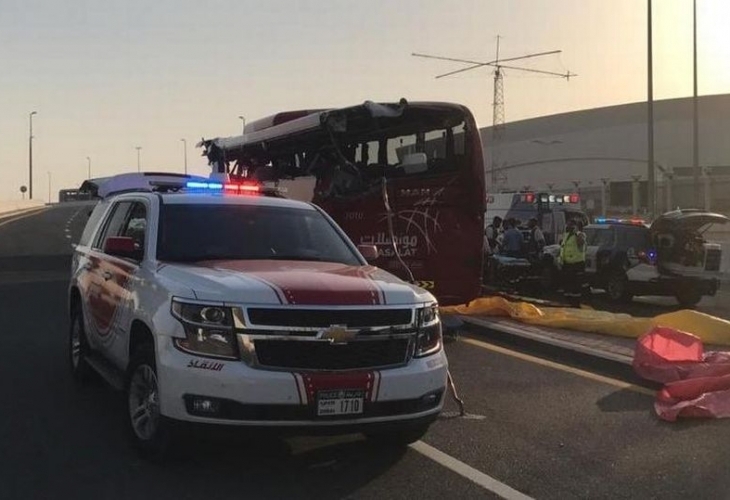 Автобусът пътувал от Дубай към Мускат в Оман. Инцидентът станал в окръг Ал Рашидия близо до летището на Дубай.