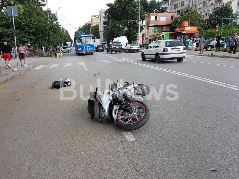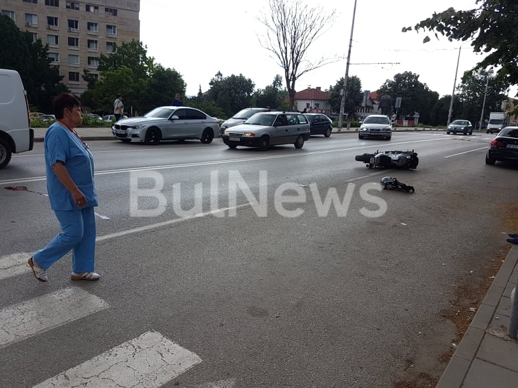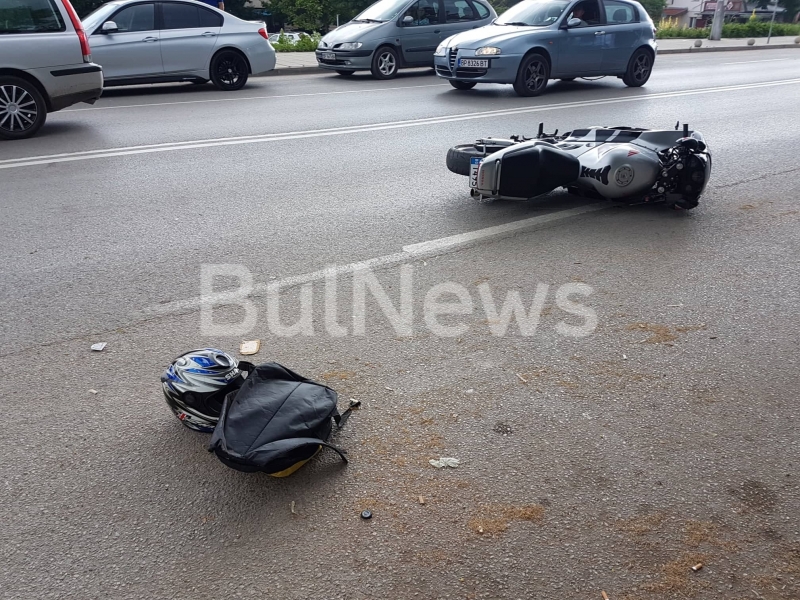 Шофьорът на мотора също паднал и се повлякъл по асфалта. Той обаче се разминал без сериозни травми.