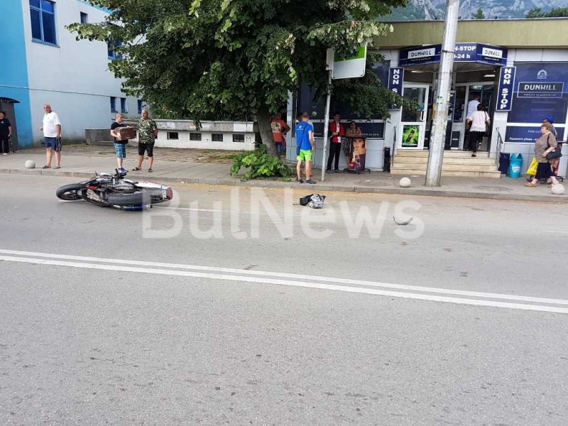 Шофьорът на мотора също паднал и се повлякъл по асфалта. Той обаче се разминал без сериозни травми.