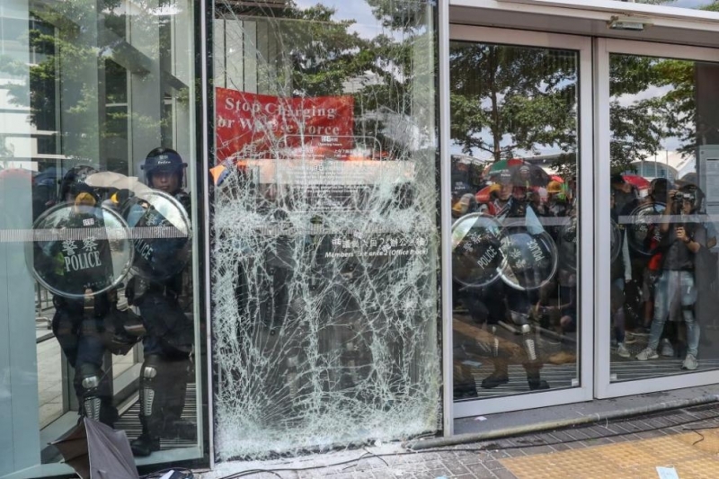 Сградата бе в епицентъра на протестите през последните седмици, организирани срещу внесен от правителството проектозакон за разрешаване на екстрадициите към континенталната част на Китай.
