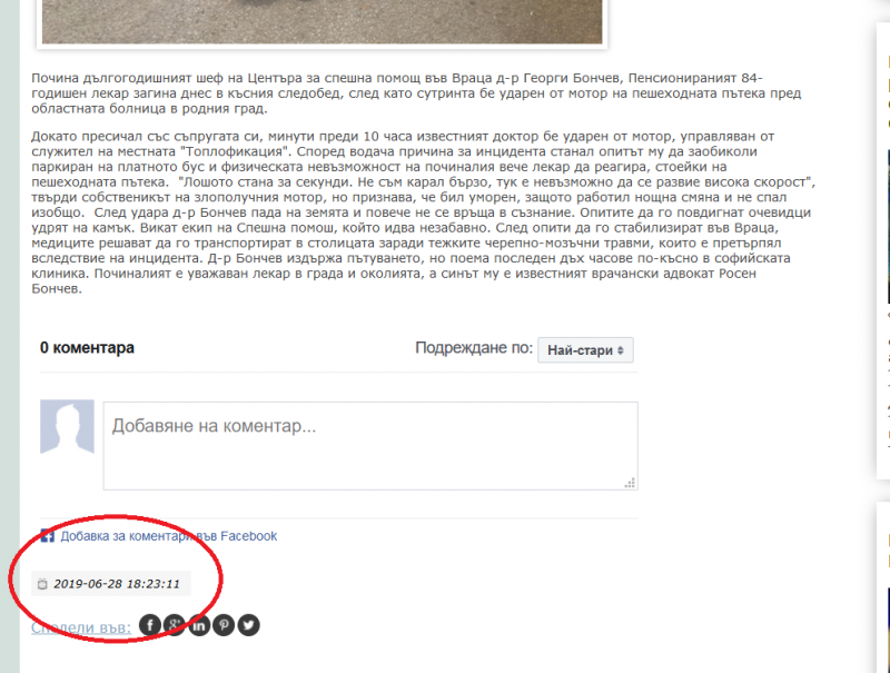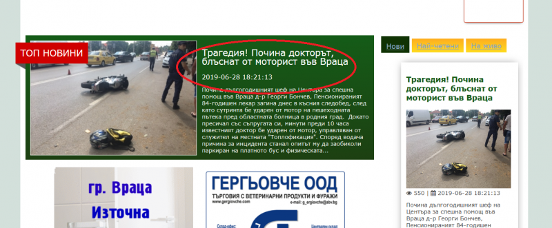 Сайтът на врачанския вестник „Враца днес“ в петък стори една от най-големите гнусотии в историята на местната журналистика. В края на деня той си позволи да разпространи новината, че е починал пострадалият по-рано при катастрофа пред болницата във Враца д-р Георги Бончев, баща на известния адвокат Росен Бончев.