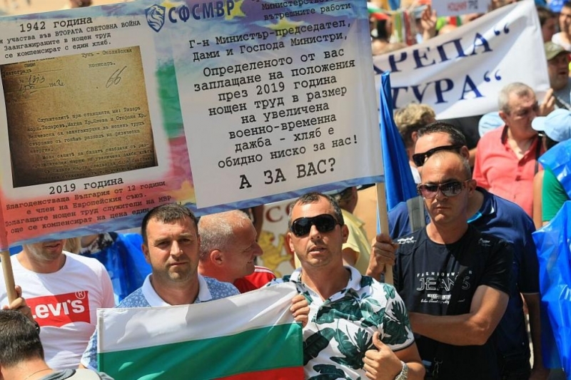 Десетки служители на МВР се събраха пред сградата на Министерски съвет на протест за по-високо заплащане на нощния труд.