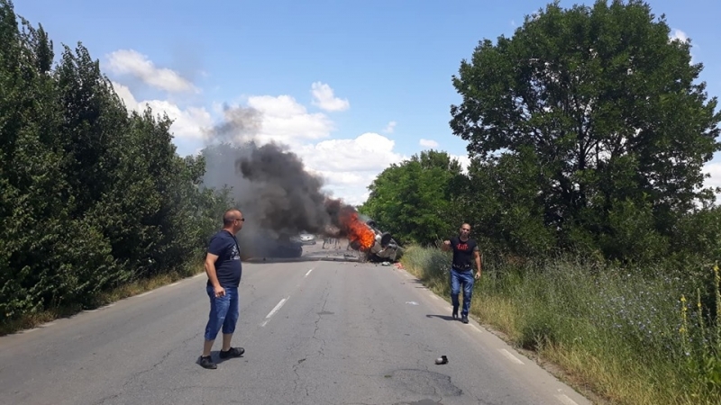 По първоначална информация да се ударили два леки автомобила. След зблъсъка едната кола се е запалила. Екипи на полиция, пожарна и спешна помощ пътуват към мястото на инцидента.