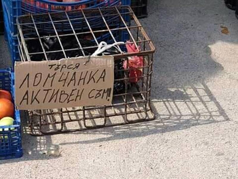 Шегаджията разпънал спокойно стоката си и до сергията поставил клетка, в която имало голям черен петел. До тук всичко било съвсем нормално и всички си мислели, че и петелът е за продан. Изненадващо обаче мъжът прикрепил към клетката табела, на която пишело „Търся ломчанка, активен съм!“.