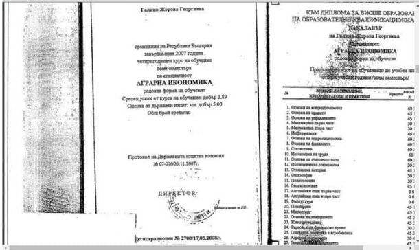 СмЕх! Новата в СЕМ е завършила аграрна икономика с 3,89 във Враца Пробутаната от мнозинството на ГЕРБ в парламента за нов член на СЕМ Галина Георгиева има фамозна експертиза. Както личи от дипломата й, тя е завършила Аграрна икономика. При това не къде да е, а в незнайния врачански филиал на УНСС, който дори не подозирахме, че съществува. И на всичко отгоре със смайващия успех от 3,89. Е, не са ли калинки?!