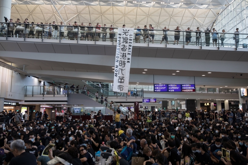 Летището на Хонконг отмени днес всички заминаващи полети, след като демонстранти влязоха в терминалите, предаде Асошиейтед прес.