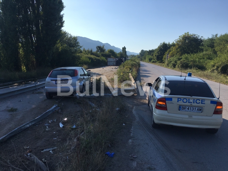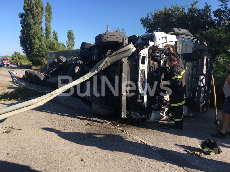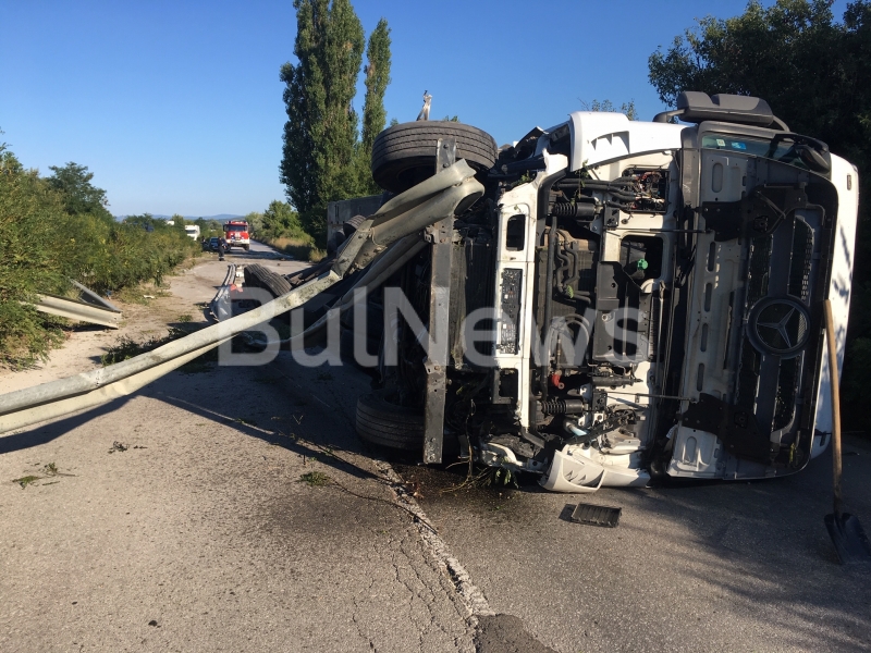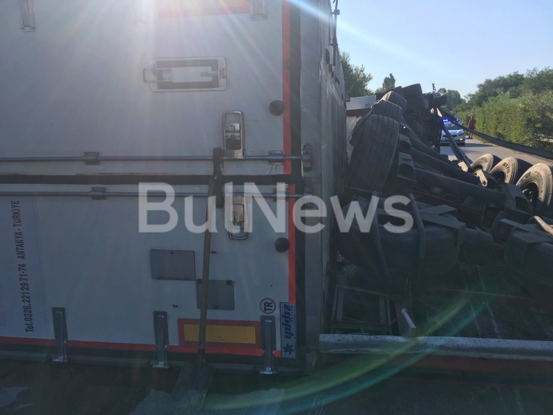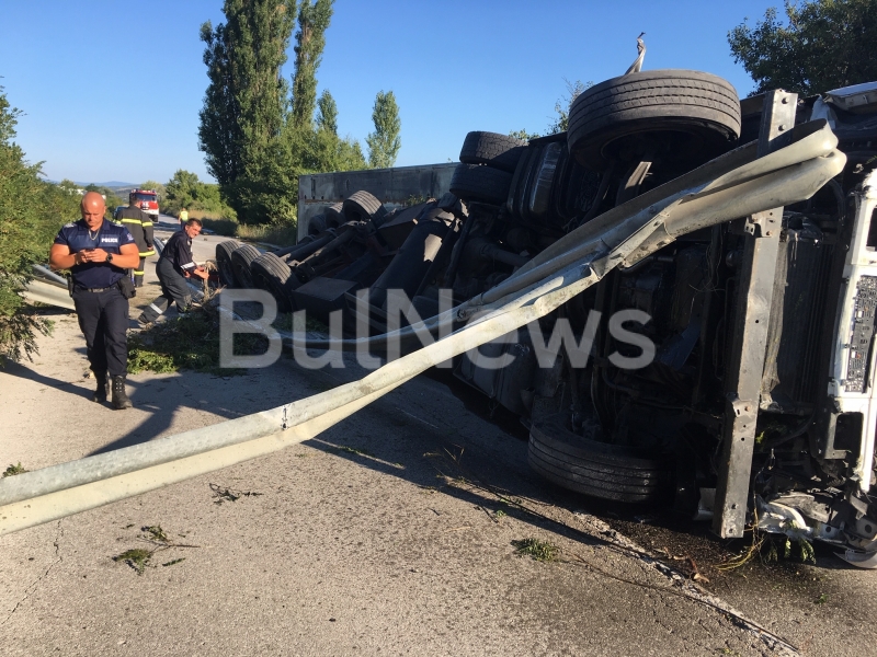 ТИР-ът се е движел толкова бързо, че след като се е обърнал, се е влачил на лявата си страна около 100 метра. На мястото на катастрофата работят два екипа на Пътна полиция и един екип огнеборци.