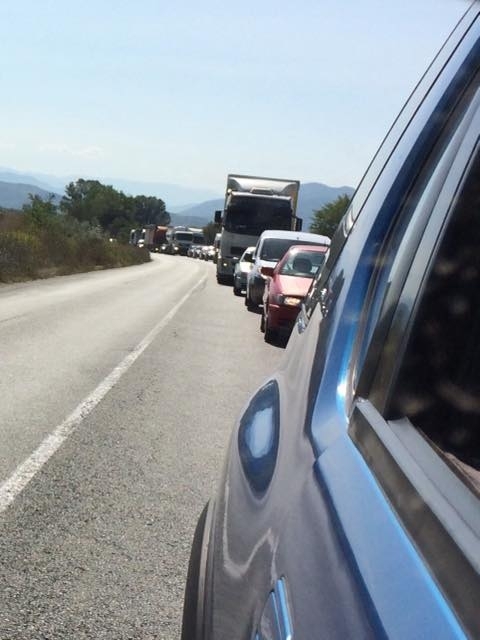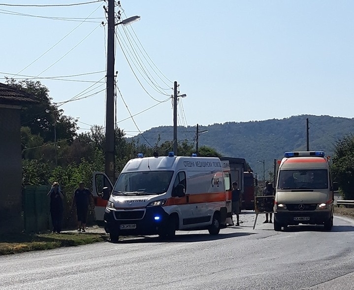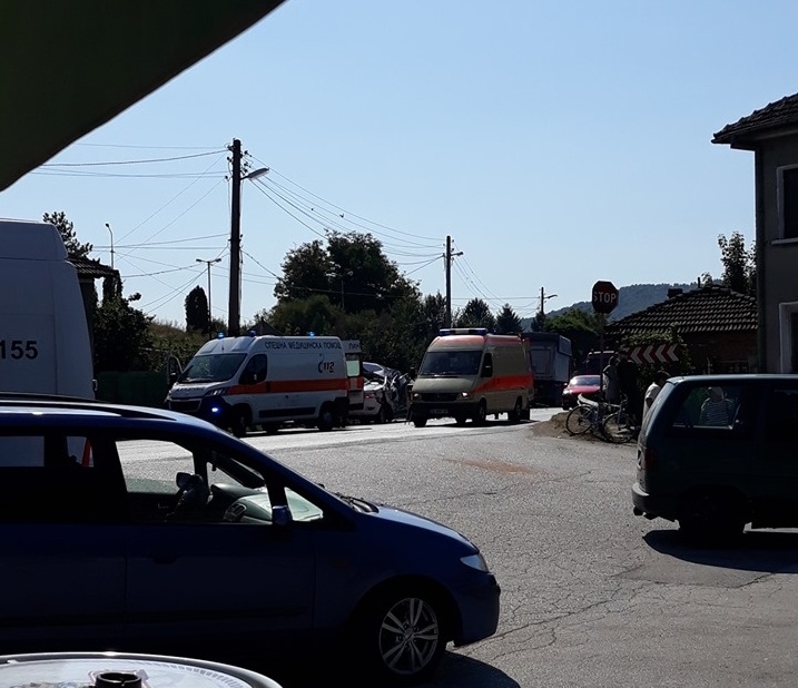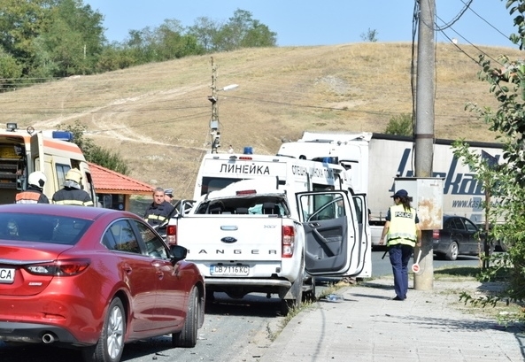 В момента на мястото на инцидента има две линейки и полиция. Движението е блокирано и са започнали да се образуват големи колони от чакащи.