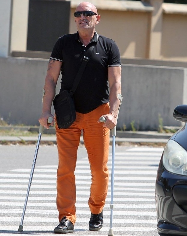 Бабаитът дойде вчера с патерици в съда заради дискова херния, която го измъчва. Това се случи само ден, след като в медиите бяха публикувани снимки как Ценко вилнее на чалга купон за рождения си ден и мята яки гюбеци напук на болежките.